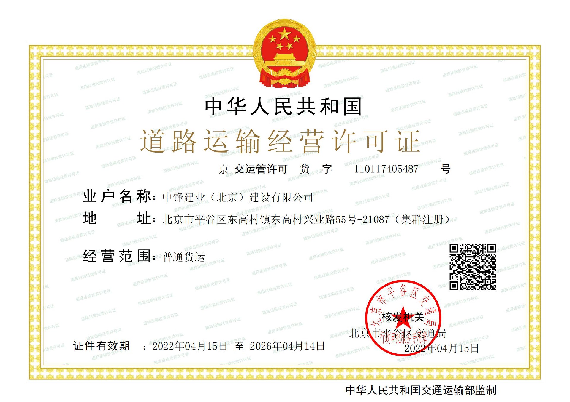 中鋒建業(北京)建設有限公司備案信息