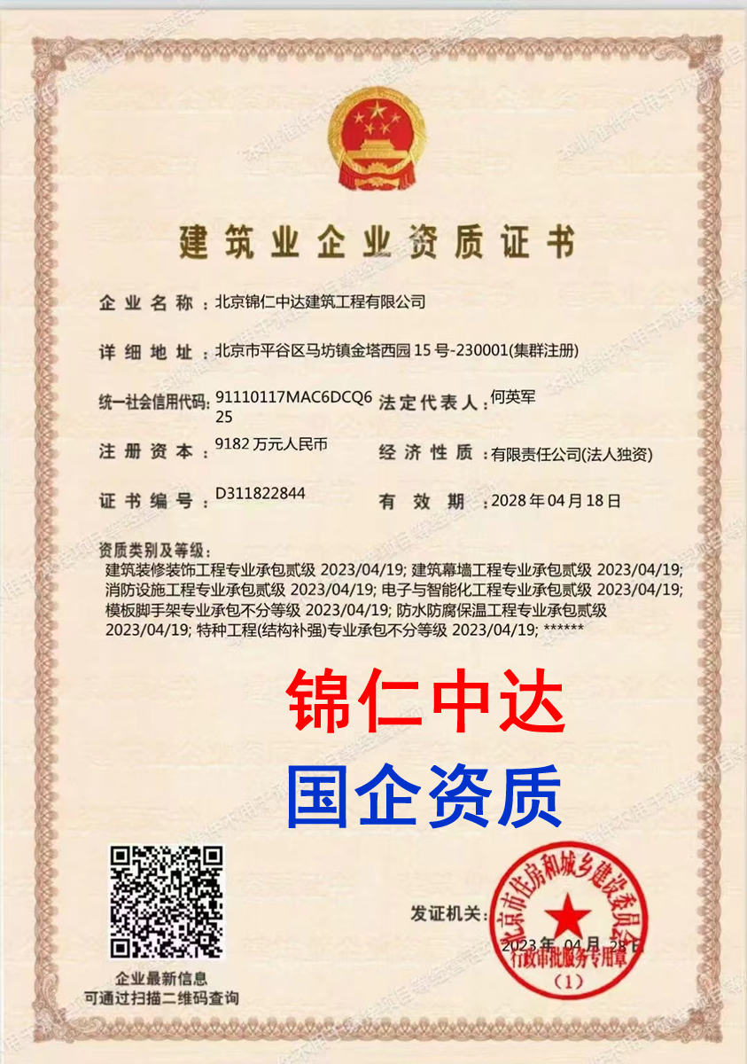 住建部北京錦仁中達建筑工程有限公司資質查詢